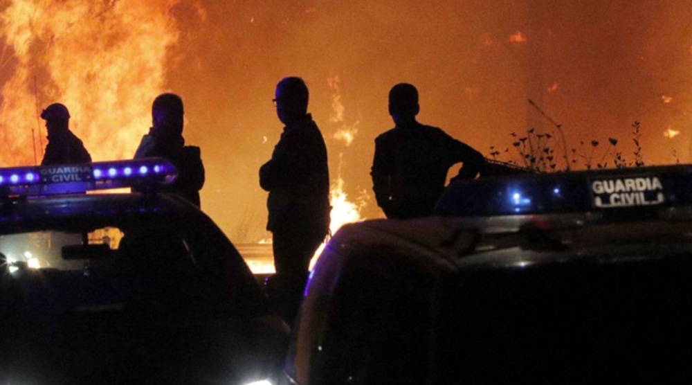 O violento incêndio que lavra em A Cañiza, na Galiza, segue descontrolado.