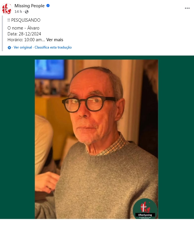 “Álvaro é magro e está vestido com calças escuras, um casaco azul petróleo e ténis pretos com algumas malhas. Traz consigo um saco preto da Fjællræven. Pode ter dificuldade em orientar-se, pois sabe-se que sofre de Alzheimer”, lê-se na página de Facebook Missing People.