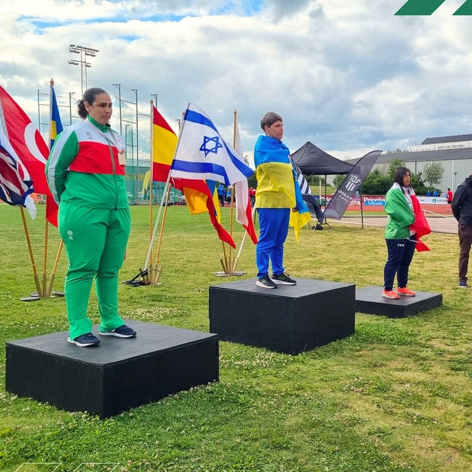 A atleta, que está a representar Portugal, alcançou o 2º lugar, com a marca de 34, 37 metros.