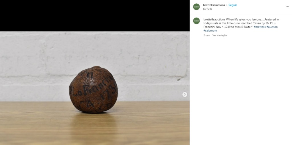 Um limão com 285 anos foi encontrado num armário antigo e leiloado por 1.780 dólares (1.650 euros).