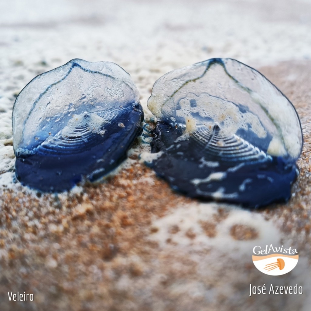 Portugal está nesta altura a ser palco daquilo que se chama de um bloom da espécie veleiro (Velella velella). O termo bloom descreve a invasão. O veleiro é toda a espécie em causa.