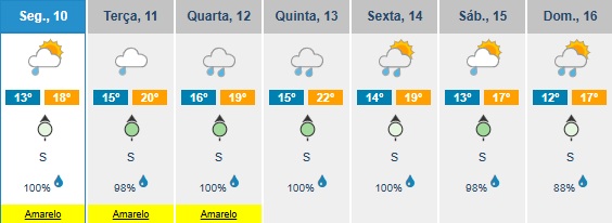 As temperaturas máximas vão rondar os 18ºC a 19ºC. Os valores mínimos nos 13ºC a 14ºC.