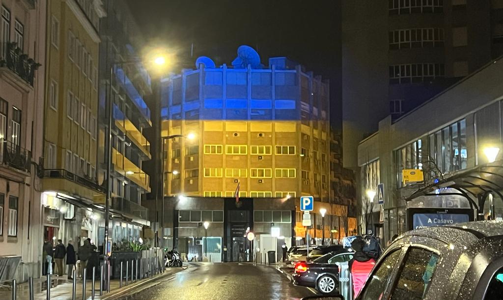 Conta a CNN Portugal que poucos minutos depois das dez da noite desta segunda-feira, quem passava pela rua Visconde de Santarém, em Lisboa, testemunhou um momento insólito. A partir de uma carrinha, manifestantes projetaram de azul e amarelo, as cores da bandeira da Ucrânia, a fachada da embaixada da Rússia.