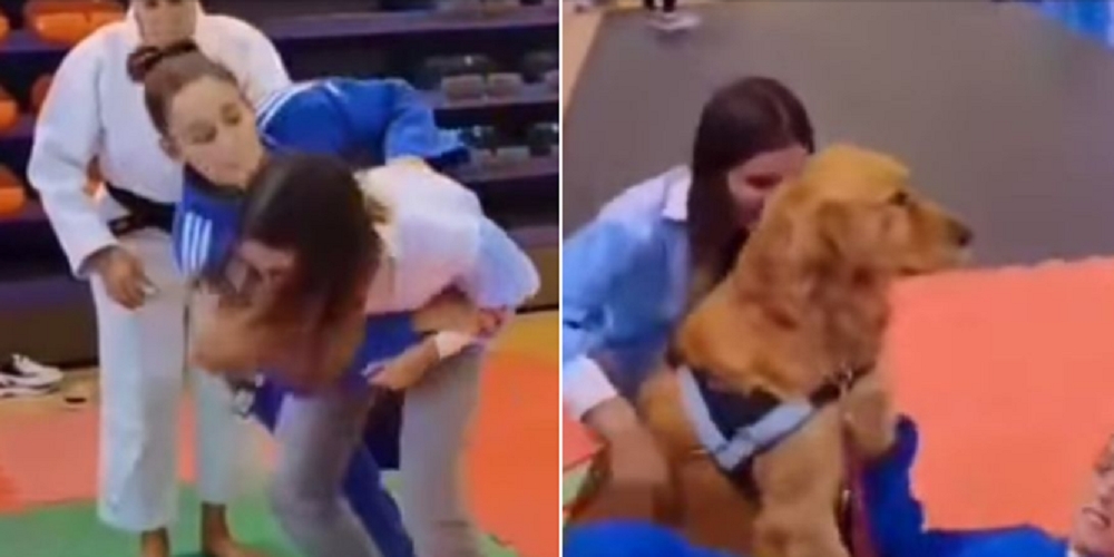 Só que Gingko, fiel amigo canino da tricampeã, não gostou nada de ver aquilo e partiu logo em defesa da dona.