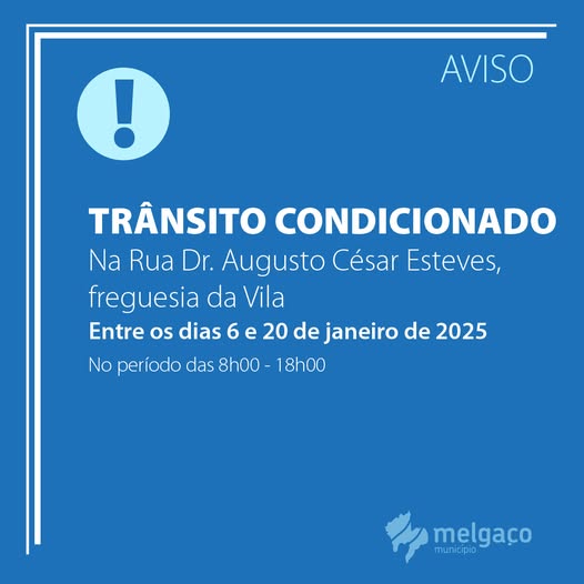 O trânsito vai estar condicionado na Rua Dr. Augsto César Esteves, em Melgaço, nos próximos dias.