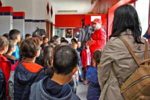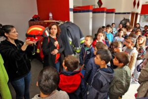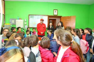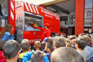 As crianças do 1º Ciclo do Ensino Básico de Melgaço visitaram esta quinta-feira o quartel dos Bombeiros Voluntários do concelho. Atentos às explicações, os mais pequenos ficaram a saber um pouco mais sobre a missão dos soldados da paz e como funciona toda a corporação. Visitaram os vários compartimentos do quartel. Entraram nas viaturas e deliciaram-se a experimentar os capacetes de combate aos fogos. Veja as fotos da visita: