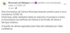 Comunicação do Município de Melgaço na página de facebook da autarquia