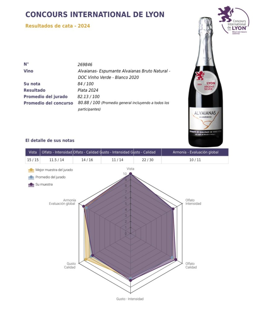 O Espumante Alvaianas Bruto Natural 2020, produzido em Melgaço, foi galardoado com a medalha de prata no Concours International de Lyon 2024, em França.