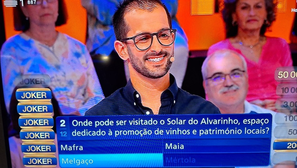 “Tenho ideia que o vinho Alvarinho é lá do norte, ou estou errado?”, começou por dizer o concorrente. Usou um joker (ajuda), e a opção Mértola foi eliminada.