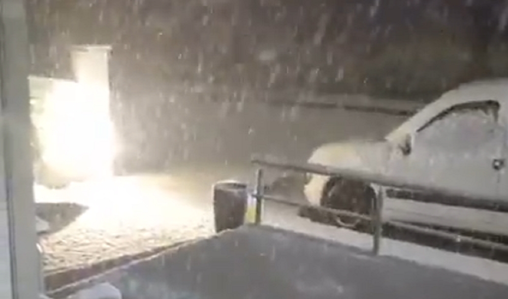Os primeiros flocos apareceram ao final da tarde desta quinta-feira. Daí em diante acelerou e agora está mesmo a acumular por toda a vila.
