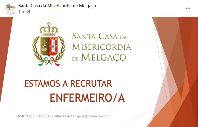 Anuncio divulgado pela Santa Casa da Misericórdia de Melgaço