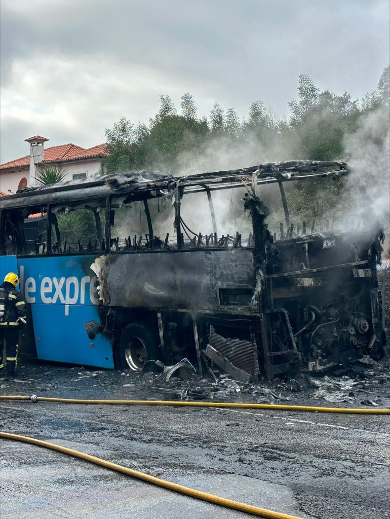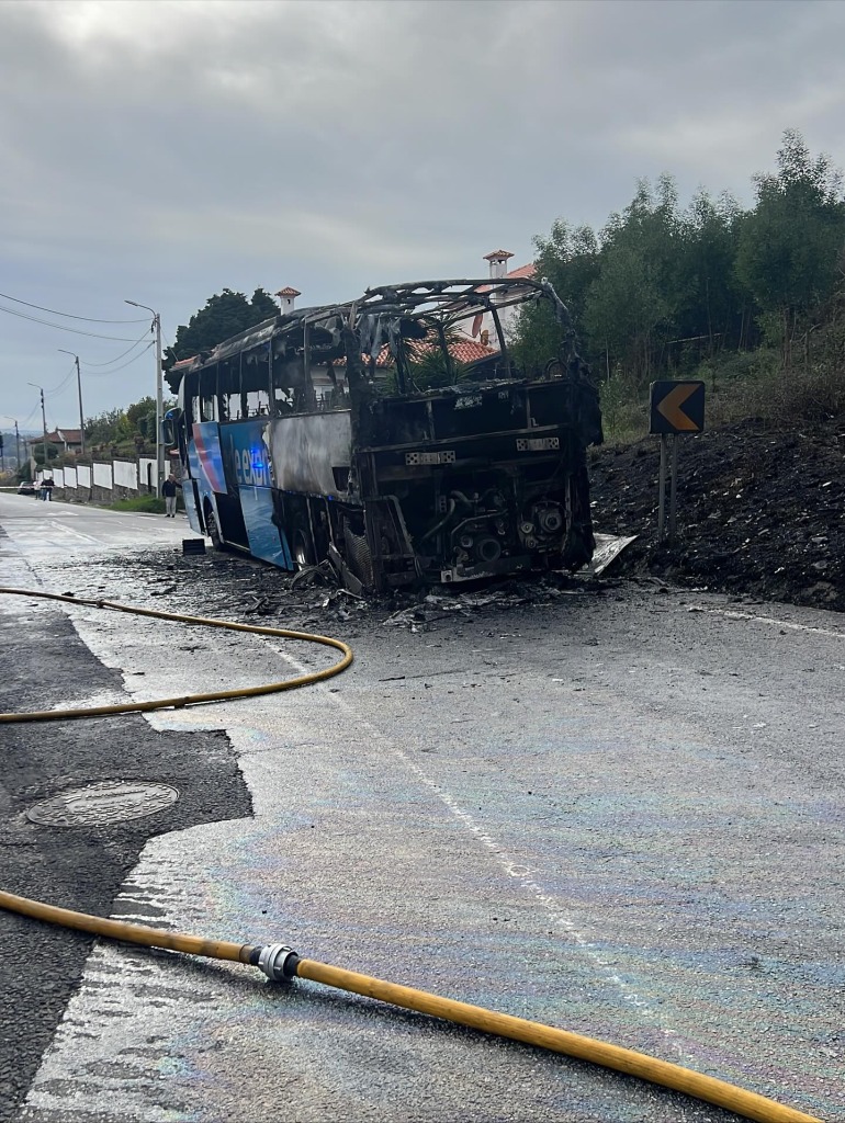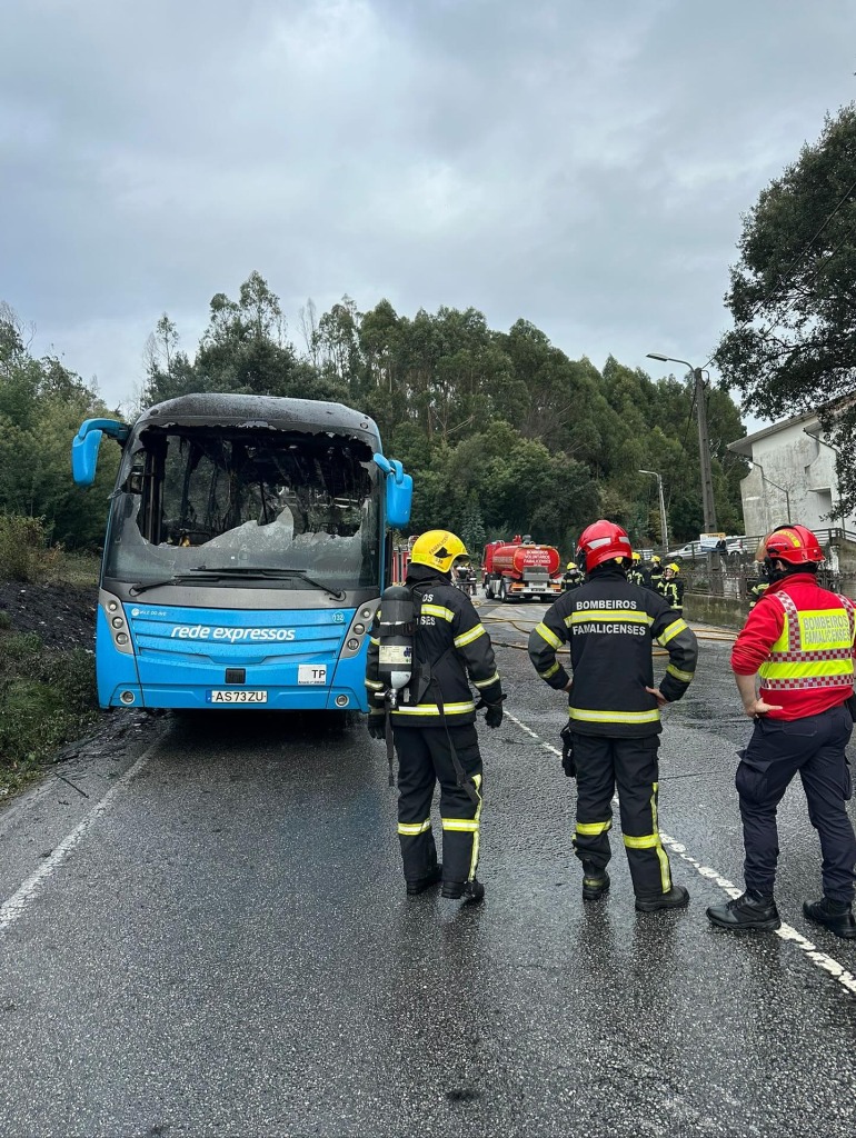O autocarro seguia em direção a Guimarães, na EN206, quando as chamas deflagraram.