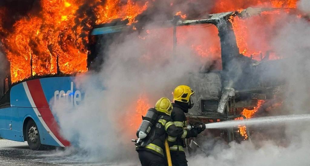 Os Bombeiros Voluntários Famalicenses divulgaram imagens impressionantes do autocarro da Rede Expressos que se incendiou durante a tarde deste domingo, na zona de Requião, em Vila Nova de Famalicão, no distrito de Braga.