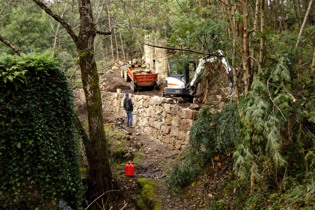 Após os trabalhos de limpeza, decorre a execução de muro e a abertura do percurso para receber a intervenção final.