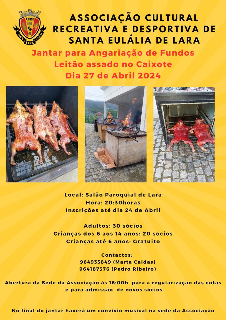 A Associação de Stª Eulália, de Lara, em Monção, realiza no próximo dia 27 de abril, sábado, um jantar convívio aberto a toda a comunidade.