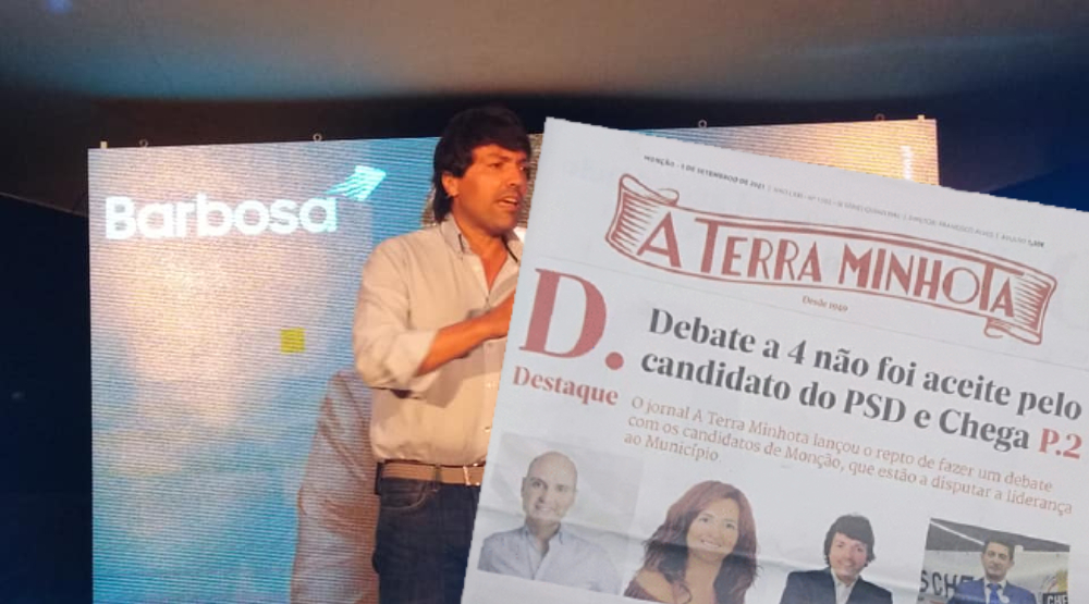 Em Lordelo, a anteceder o comício eleitoral naquela freguesia, Barbosa chamou a atenção para a manchete do mais recente número deste jornal quinzenal que diz ter desafiado os candidatos à Câmara monçanense para um debate. No título principal pode ler-se «Debate a 4 não foi aceite pelo candidato do PSD e Chega».