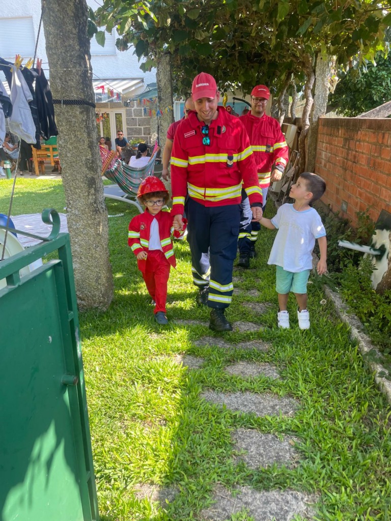 Durante a festa teve uma surpresa que lhe encheu o coração de alegria: recebeu dos pais uma farda de bombeiro.