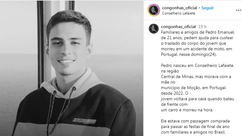 O jovem, que tinha 21 anos de idade, “estava com passagem comprada para passar as festas de final de ano com familiares e amigos no Brasil”, lê-se numa publicação a circular nas redes sociais.