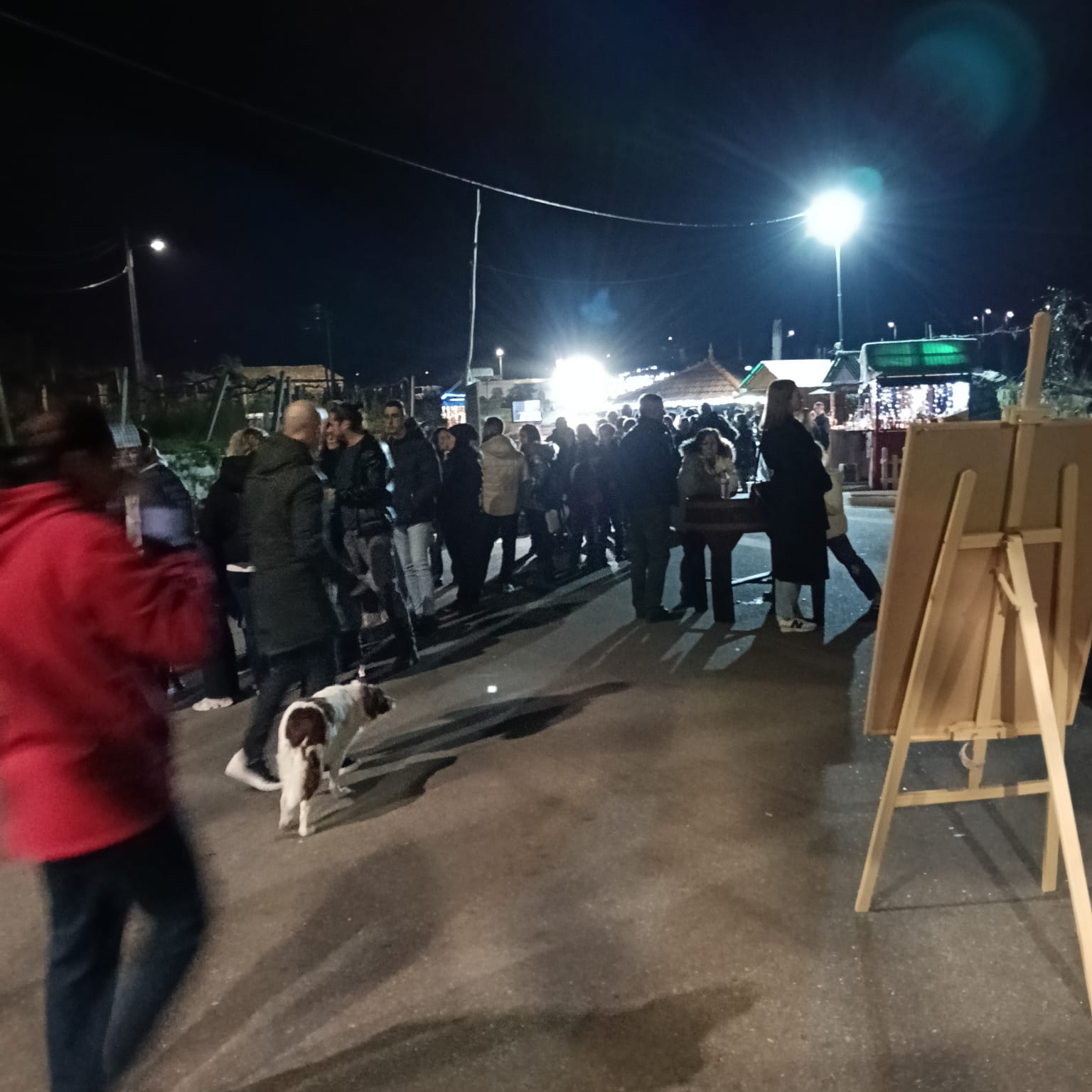 Enquanto uns vão ver o presépio ali perto, outros ficam na fila a guardar lugar.