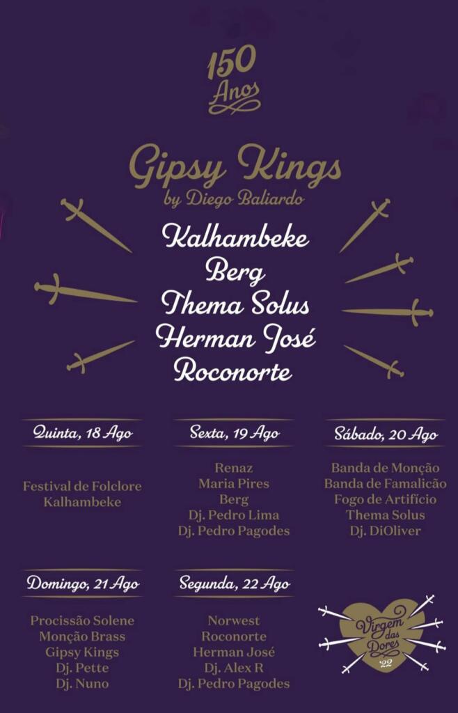 Os Gipsy Kings by Diego Baliardo vão atuar na próxima edição da Festa em Honra à Virgem das Dores em Monção. Aquelas que são as maiores festividades religiosas do concelho vão realizar-se entre os próximos dias 18 e 22 de agosto.