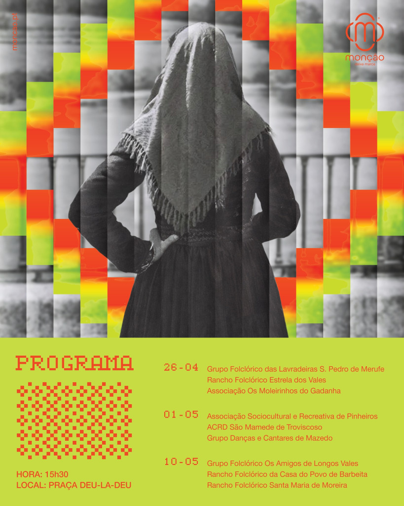 Assim, nos dias 26 abril, 1 e 10 de maio, sempre a partir das 15h30, a sala de visitas do concelho, Praça Deu-la-Deu, abre-se à atuação dos nove grupos folclóricos locais, animando o centro histórico da vila.