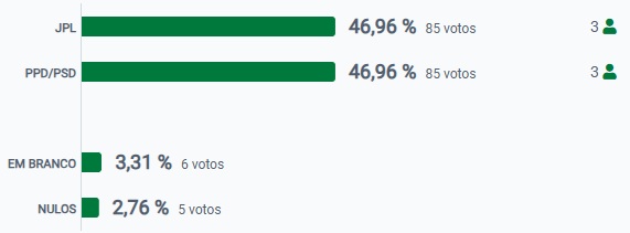 A candidatura Juntos Por Lara obteve 85 votos. A candidatura do PSD alcançou também 85 votos.
