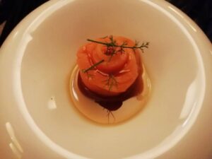 A noite contou ainda com um convidado especial, vindo de Banguecoque, o Chef Nelson Amorim, que brindou os comensais com uma inspiração tailandesa. Tudo integrado num menu intitulado Cumplicidades Gastronómicas. Dividiu-se em seis momentos e contou com 4 espumantes (Côto de Mamoelas Reserva 2015, QM Reserva, Reguengo de Melgaço Reserva 2015 e Cortinha Velha Reserva 2014) e 10 alvarinhos (Quinta do Mascanho 2017, Quinta das Pereirinhas Superior 2017, Rebouça 2018, Terras de Conclave 2017, Quinta de Santiago 2017, Alvarianas 2017, Quinta do Regueiro Primitivo 2016, Poema Reserva 2017, Anselmo Mendes Parcela Única 2017 e Soalheiro Reserva 2017), mostrando diferentes abordagens.