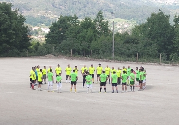 Bola a meio campo e um minuto de silêncio pelos antigos jogadores, sócios e dirigentes já falecidos. Foi dado o pontapé de saída e os mais novos da freguesia puderam ter também a experiência de jogar com os veteranos.