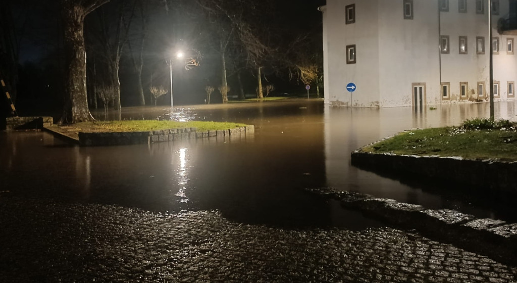 Foi uma noite de muita chuva no Alto Minho. Em Monção, as águas do rio Minho continuam a rodear o edifício das antigas termas e já entram no parque de estacionamento das Caldas.