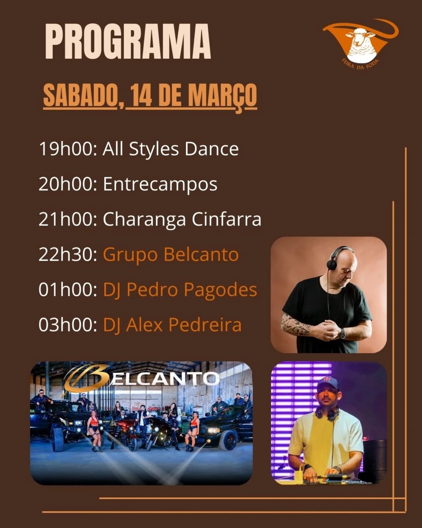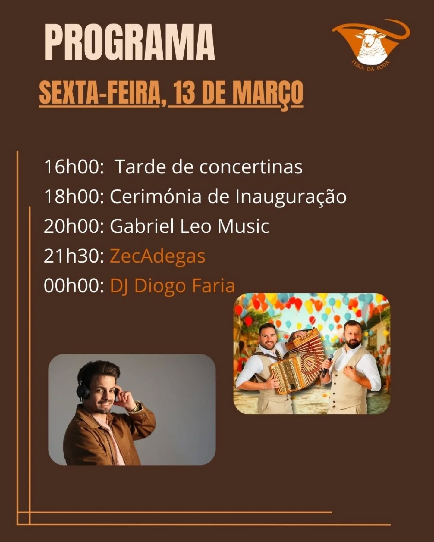 Vão atuar no último dia do certame, 15 de março, a partir das 18h00.