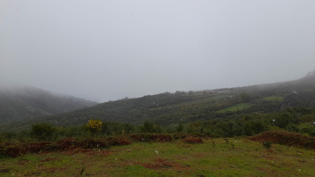 Passavam poucos minutos das 10h00 deste sábado quando os flocos começaram a cair na Branda de Stº António de Val de Poldros, em Riba de Mouro, Monção.