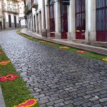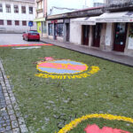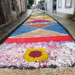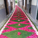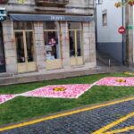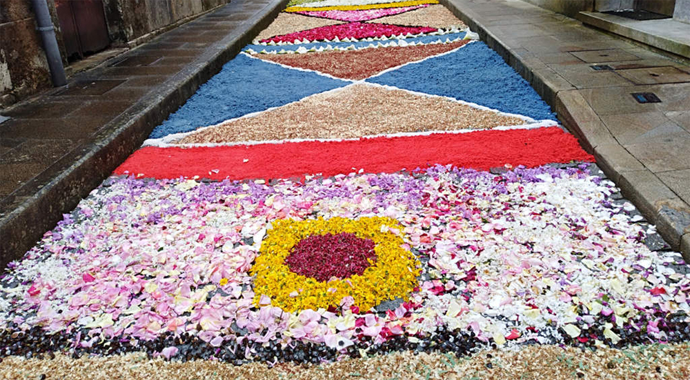De manhã, as ruas acordam enfeitadas com pétalas, funcho, borras de café e serrim de várias cores com criativos desenhos geométricos e diversos motivos religiosos. Até início da tarde, são milhares as pessoas que visionam os tapetes floridos e que, a partir das 16h30, participam na missa solene na Igreja Matriz seguida da bênção, distribuição de rosas e procissão pelo centro histórico.