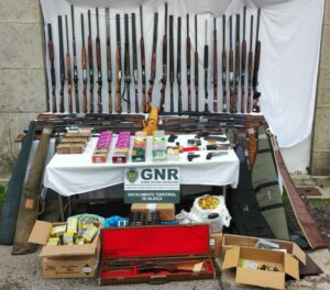 No âmbito uma investigação por tráfico e mediação de armas, detenção de armas proibidas, fraude fiscal e burla qualificada, os militares da Guarda realizaram diversas diligências de investigação que permitiram identificar os suspeitos e culminaram na realização de duas buscas, uma em estabelecimento comercial e uma em veículo, tendo sido apreendido 54 armas de fogo de diversos calibres; 2.176 munições de diversos calibres; um quilo de pólvora; e três telemóveis.