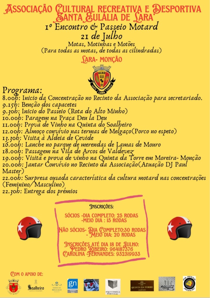 A freguesia de Lara, em Monção, vai ser palco no próximo dia 21 de julho, domingo, da primeira edição do Encontro&Passeio Motard daquela freguesia.