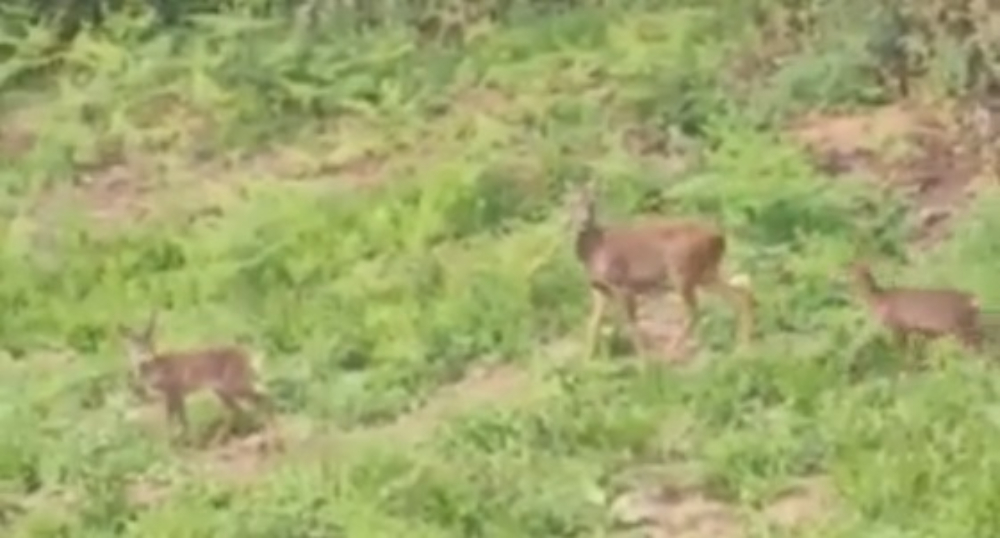 Nas imagens é possível ver um corço e, provavelmente, respetivas crias no referido terreno.