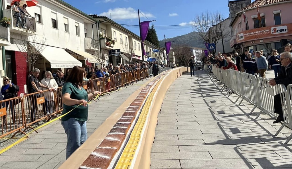 As pastelarias Caracas, Doce Lima e Liz confecionaram esta delícia gastronómica, que no ano passado superou os 210 metros. Mais sete metros que o recorde de 2022.