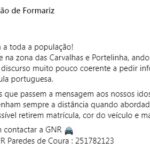 “Pedimos cautela a toda a população! Na tarde de hoje na zona das Carvalhas e Portelinha, andou um senhor com um discurso muito pouco coerente a pedir informações. Carro de matrícula portuguesa”, descreve aquela associação em comunicado divulgado nas redes sociais.