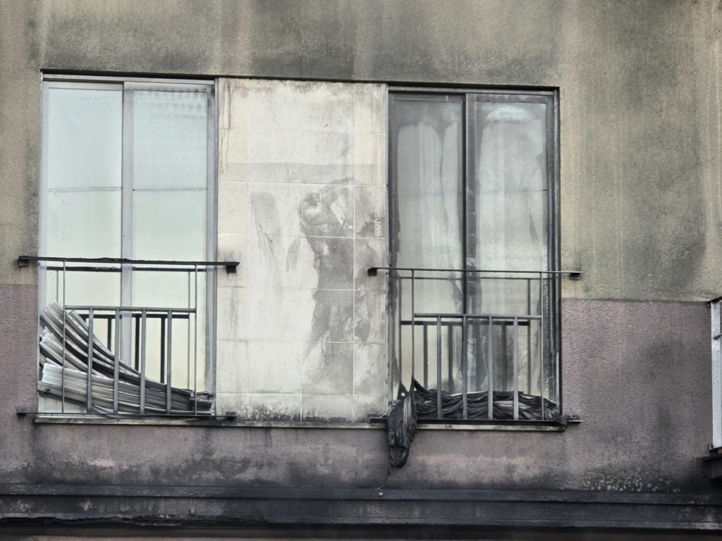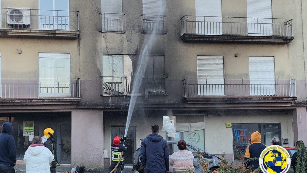 A violência das chamas também provocou danos nas janelas do prédio mais próximo.