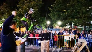 Uma multidão vibrou este sábado à noite com a perícia e o talento de autênticos ases ao pedal. Paredes de Coura recebeu mais uma edição do Open de Trial Bike. Os participantes conseguiram arrebatar o público com as mais diversas acrobacias. Entre momentos de equilíbrio que pareciam quase impossíveis e saltos mortais no ar, os aplausos ecoaram por várias vezes no recinto mesmo em frente à Câmara Municipal. No final, a entrega de prémios esteve a cargo de Tiago Cunha, vereador na Câmara Municipal e Cláudia Pires de Lima, presidente da Junta da União de Freguesias de Paredes de Coura e Resende. Veja as fotos e vídeos de alguns momentos de cortar a respiração [todos créditos: Cecília Pereira].
