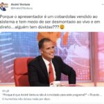 Não satisfeito com as declarações do humorista, o líder do Chega, usou a rede social Twitter para responder às declarações de forma provacativa, afirmando que Ricardo Araújo Pereira é “um cobardolas vendido ao sistema” e que “tem medo de ser desmontado ao vivo e em direto”.