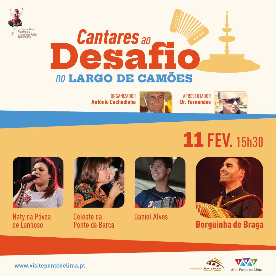O Largo de Camões, em Ponte de Lima, vai ser palco no próximo domingo, dia 11 de fevereiro, de um espetáculo de Cantares ao Desafio.