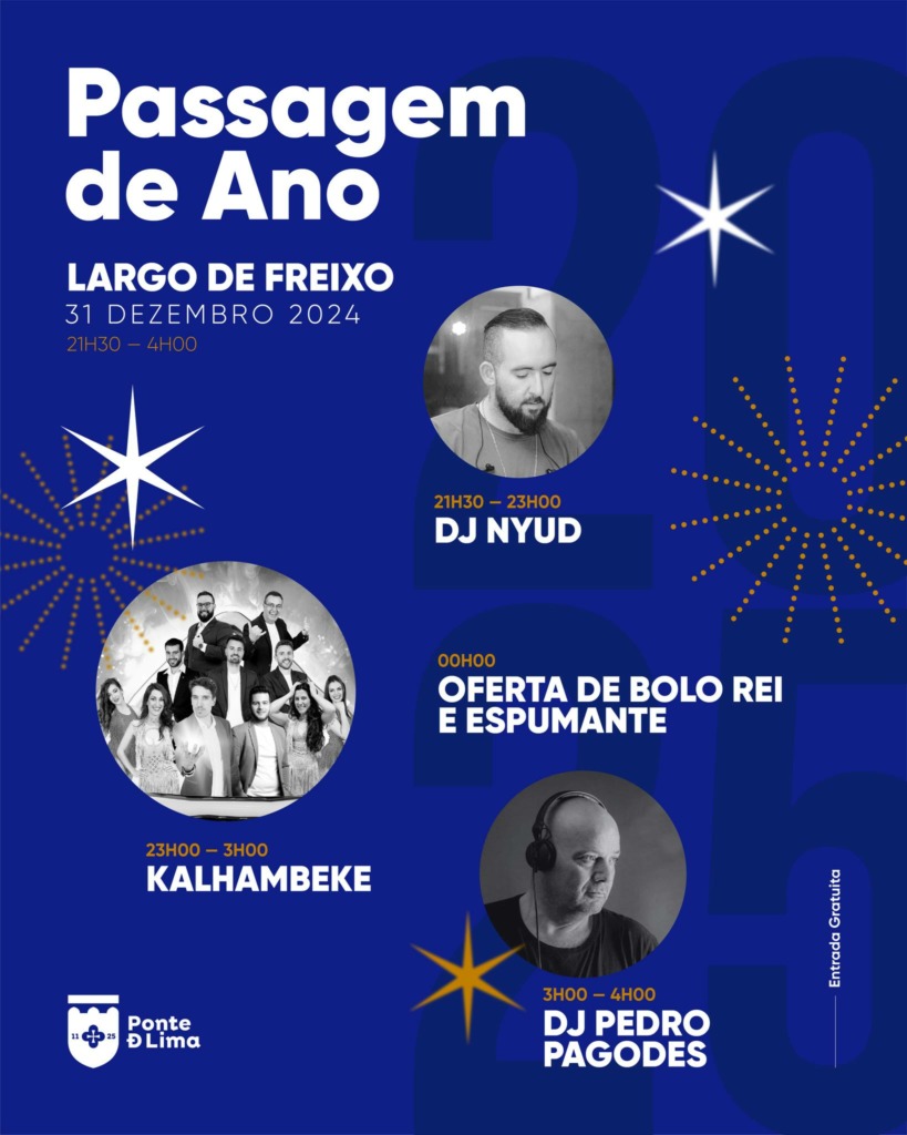 Às 23h00 sobem então ao palco os Kalhambeke, que vão acompanhar a vila mais antiga de Portugal na entrada em 2025.