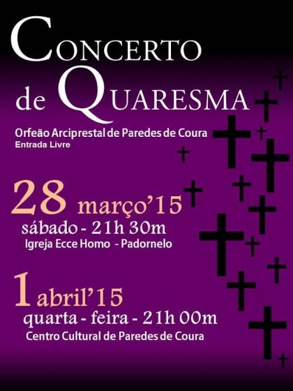 O Centro Cultural de Paredes de Coura recebe no próximo dia 1 de abril um Concerto de Quaresma. A iniciativa está a cargo do Orfeão Arciprestal de Paredes de Coura e está agendada para as 21h00.