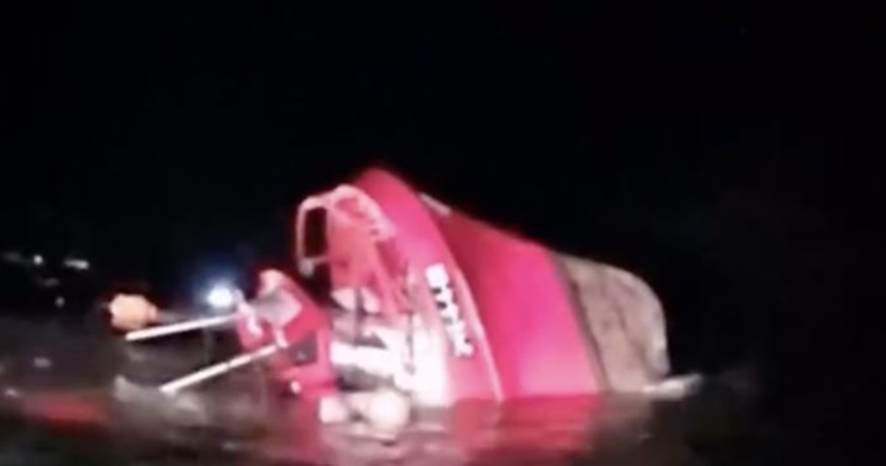 Apesar da rápida intervenção dos meios de socorro, a embarcação acabou parcialmente afundada.
