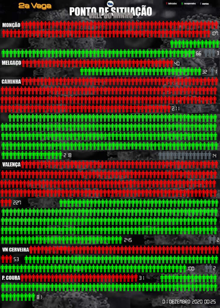 Vila Nova de Cerveira melhorou. Registaram-se mais seis casos da nova doença, mas surgiram 10 recuperados. A Vila das Artes segue agora com 169 casos confirmados, sendo que 53 estão ativos. Há 113 casos recuperados e três óbitos registados.