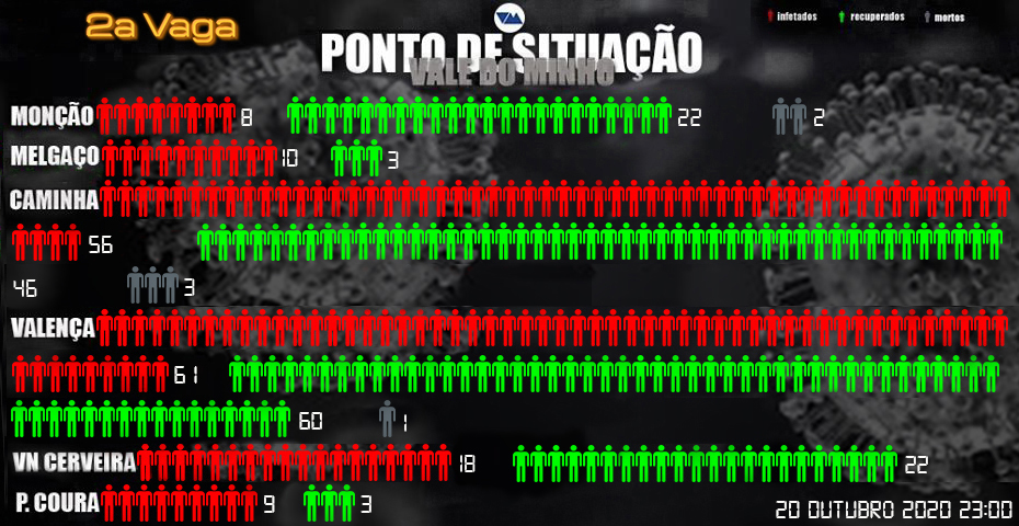 Valença piorou. Somou mais 10 casos confirmados da nova doença. A situação só não foi mais dramática graças a mais nove recuperados. Este concelho segue com 145 casos confirmados, sendo que 61 estão ativos. Há 83 casos recuperados e um óbito registado neste concelho.