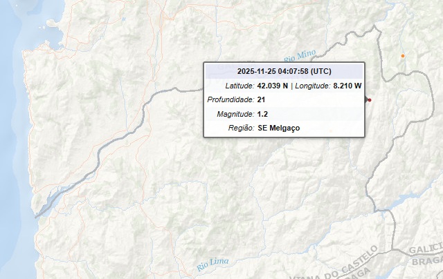 Um sismo foi registado, na madrugada desta terça-feira, em Melgaço.