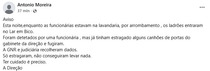Nas redes sociais, um testemunho dá conta de que os lárapios entraram nas instalações “por arrombamento”.
