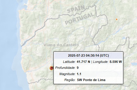 Um sismo de magnitude 1.1 na escala de Richter foi registado, na madrugada desta quarta-feira, em Ponte de Lima, indica o Instituto Português do Mar e da Atmosfera (IPMA).