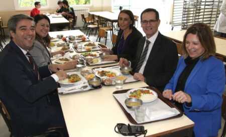 Momento inserido na assinatura do protocolo para o fornecimento de carne de cachena para ser servida nos refeitórios escolares.
